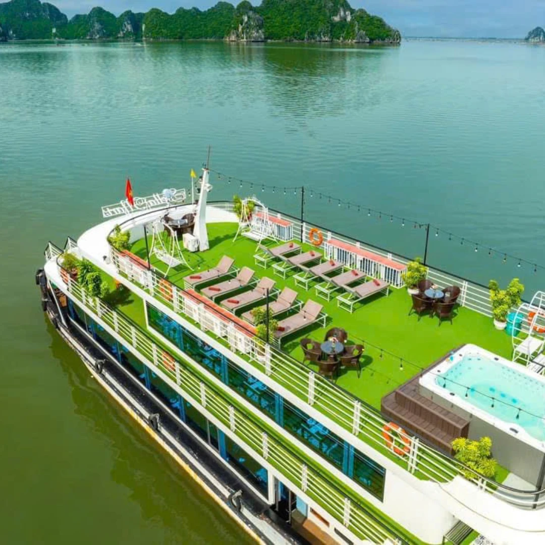 Key attractions include Fighting Cock Islet, Incense Burner Islet, and famous caves like Thien Cung Cave and Sung Sot Cave. Visitors can engage in activities such as kayaking, coral reef diving, and enjoying fresh seafood.