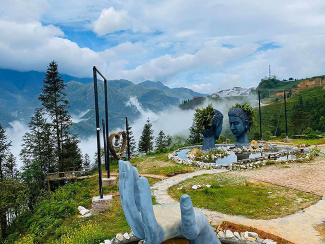 6. Swing Sa Pa – Hàm Đất: Tổ hợp check-in mới (nằm trên đường Nguyễn Chí Thanh) nổi bật với nhiều góc sống ảo như tượng đôi trai gái, bàn tay đá, “nấc thang lên thiên đường” và xích đu ngắm cảnh. Du khách có thể thuê trang phục dân tộc với giá ~50.000đ/bộ để chụp hình đẹp hơn. Đây là điểm vui chơi – chụp hình độc đáo ngay tại trung tâm thị trấn.