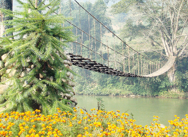 8. Hẻm Đá Cầu Mây: Nằm ở xã San Sả Hồ, là hẻm núi với những cây cầu treo gỗ thủ công bắc qua thung lũng sâu. Không gian tại đây rất thơ mộng và có nhiều góc ảnh đẹp. Đến Hẻm Đá Cầu Mây, du khách có thể băng qua cầu gỗ, ngắm cảnh ruộng bậc thang và suối bên dưới.