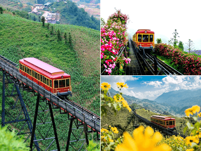 5. Fansipan (đỉnh Thiên Sơn): Đỉnh cao nhất Việt Nam (3.143m). Bạn có thể lên đỉnh bằng hệ thống cáp treo + tàu hỏa leo núi hiện đại. Giá vé cáp treo ~950.000đ/người lớn (trẻ em 525.000đ), tàu hỏa leo núi thêm ~99.000đ. Hành trình kết hợp tàu và cáp treo rất thú vị, chỉ cần xếp hàng mua vé, sau đó lên đỉnh thăm quần thể tâm linh Kim Sơn Bảo Thắng Tự và tượng Phật. Do nhiệt độ giảm sâu ở đỉnh, bạn nên mang giày đế thấp, áo khoác và ô dù phòng lạnh, sương đêm