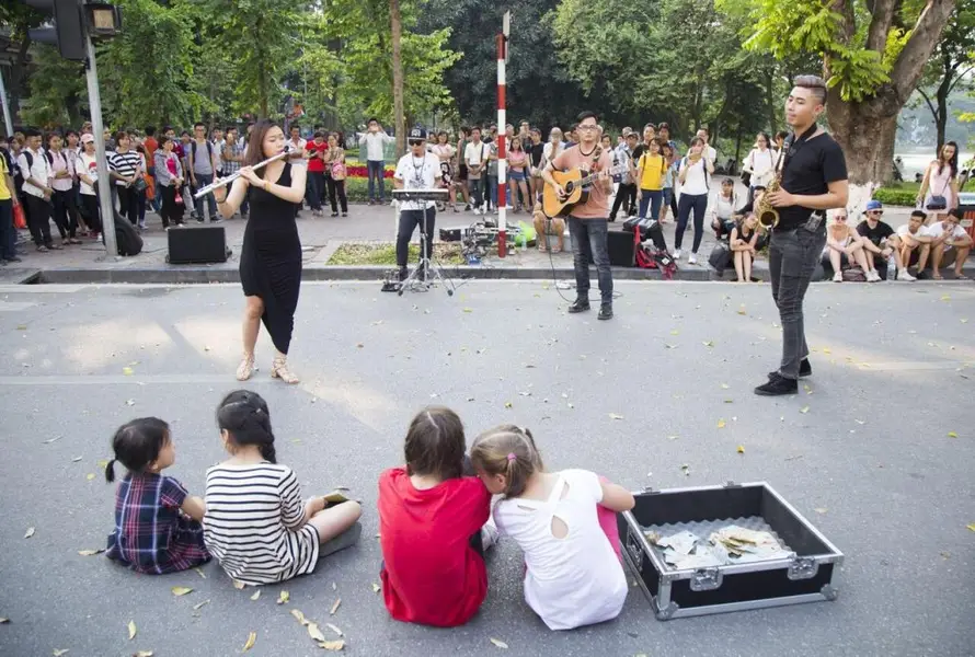 - Nghệ thuật đường phố: Từ các ban nhạc acoustic trẻ trung, nhảy hiện đại đến các loại hình nghệ thuật truyền thống như hát xẩm, chèo đều được biểu diễn công phu dọc các tuyến phố.