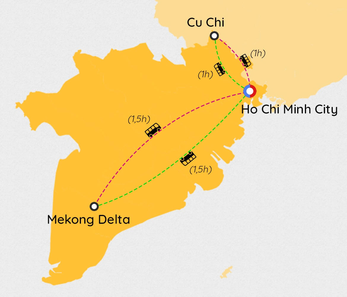 Chào mừng đến với Thành phố Hồ Chí Minh - thành phố lớn nhất Việt Nam. Hướng dẫn viên và tài xế của chúng tôi sẽ đón bạn tại sân bay và đưa bạn đến khách sạn để nhận phòng. Phòng luôn sẵn sàng phục vụ bạn từ 02:00 chiều trở đi.