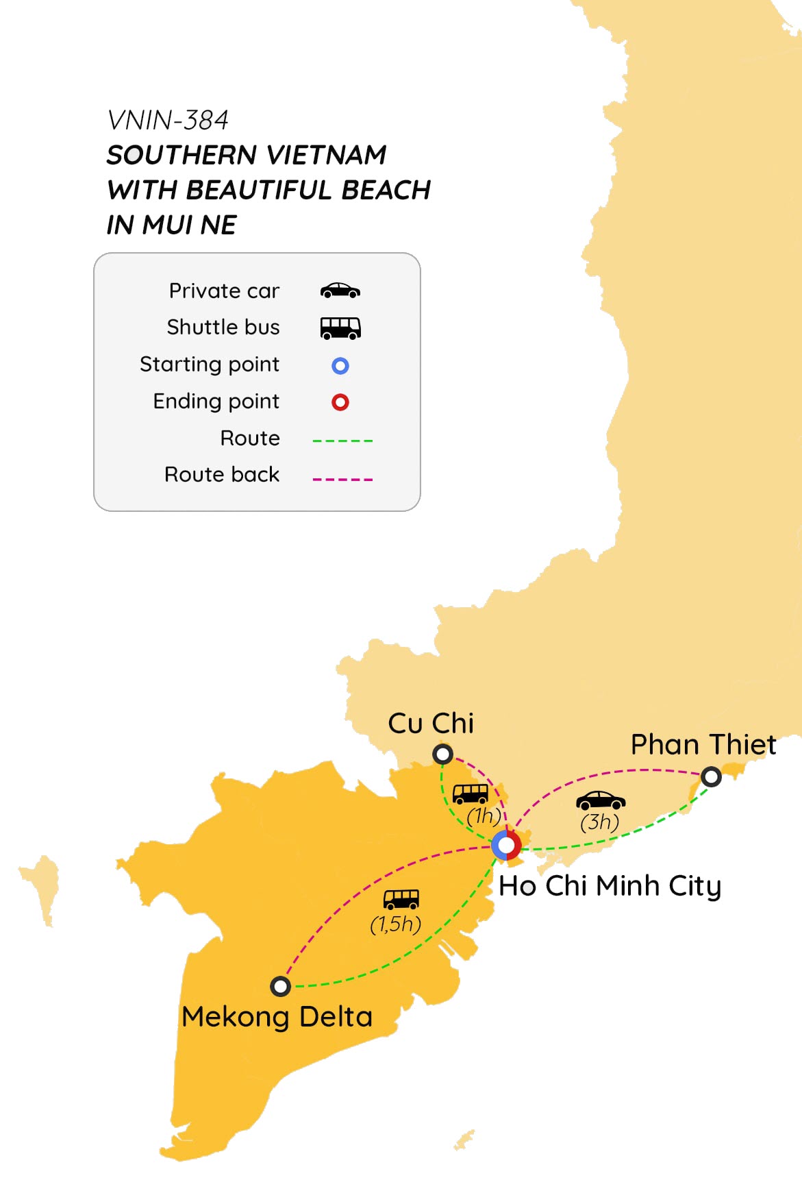 Cuộc phiêu lưu này mang đến cho du khách Ấn Độ cơ hội khám phá miền Nam Việt Nam bao gồm Thành phố Hồ Chí Minh, Đồng bằng sông Cửu Long và những bãi biển quyến rũ ở Phan Thiết. Du khách Ấn Độ cũng có thời gian để củng cố kiến thức về lịch sử và văn hóa Việt Nam. Để biết thêm ý tưởng và hành trình du lịch, hãy thoải mái xem các gói tour du lịch Việt Nam của chúng tôi.