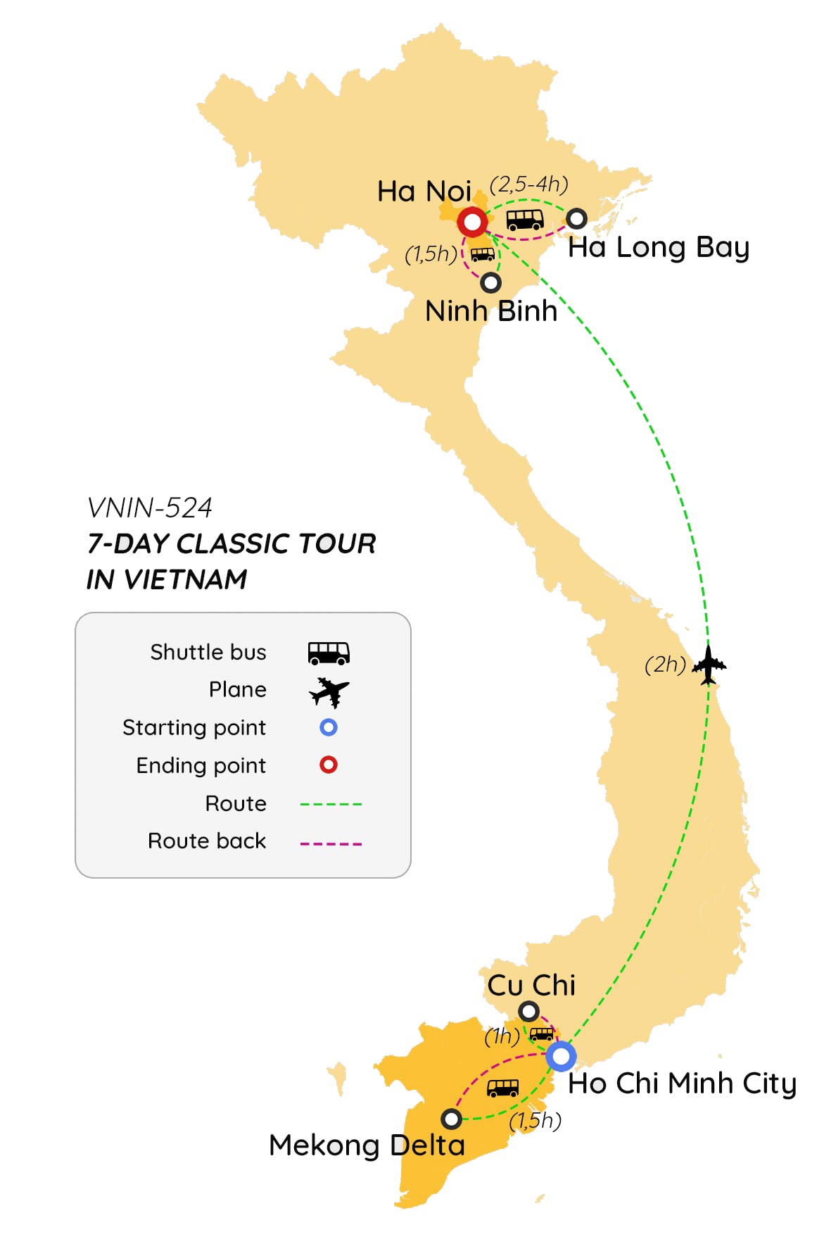 Gói tour du lịch Việt Nam này sẽ mang đến cho bạn hương vị tuyệt vời nhất trong một chuyến phiêu lưu ngắn. Du ngoạn từ Thành phố Hồ Chí Minh năng động và sôi động đến Hà Nội quyến rũ với kiến trúc thuộc địa đang phai tàn và các di tích quốc gia trong hành trình đưa bạn qua nhiều điểm tham quan hấp dẫn nhất của Việt Nam. Xem những trải nghiệm nào đang chờ bạn trong 7 ngày tuyệt đẹp này.