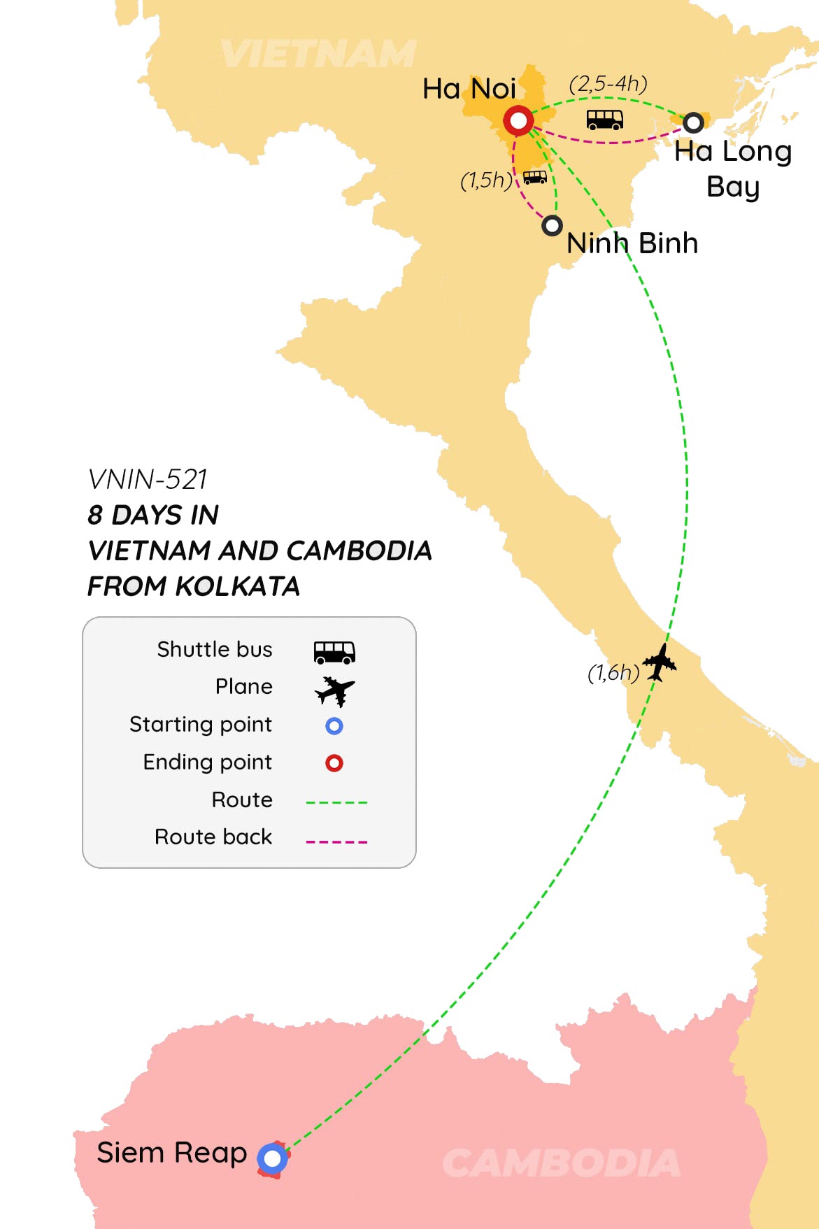 Siem Reap (2 đêm), Hà Nội (4 đêm), Vịnh Hạ Long (1 đêm)