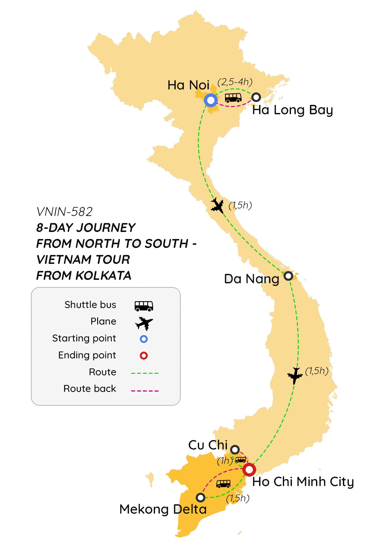 Gói tour 8 NGÀY ĐẾN VIỆT NAM này được thiết kế dành riêng cho khách du lịch đến từ Kolkata. Khi tham gia gói tour Việt Nam này, bạn sẽ có cơ hội khám phá những điều tuyệt vời nhất của Việt Nam với những điểm nổi bật như thủ đô Hà Nội, Di sản thế giới Vịnh Hạ Long, Cầu Vàng tuyệt đẹp cũng như Địa đạo Củ Chi nổi tiếng.