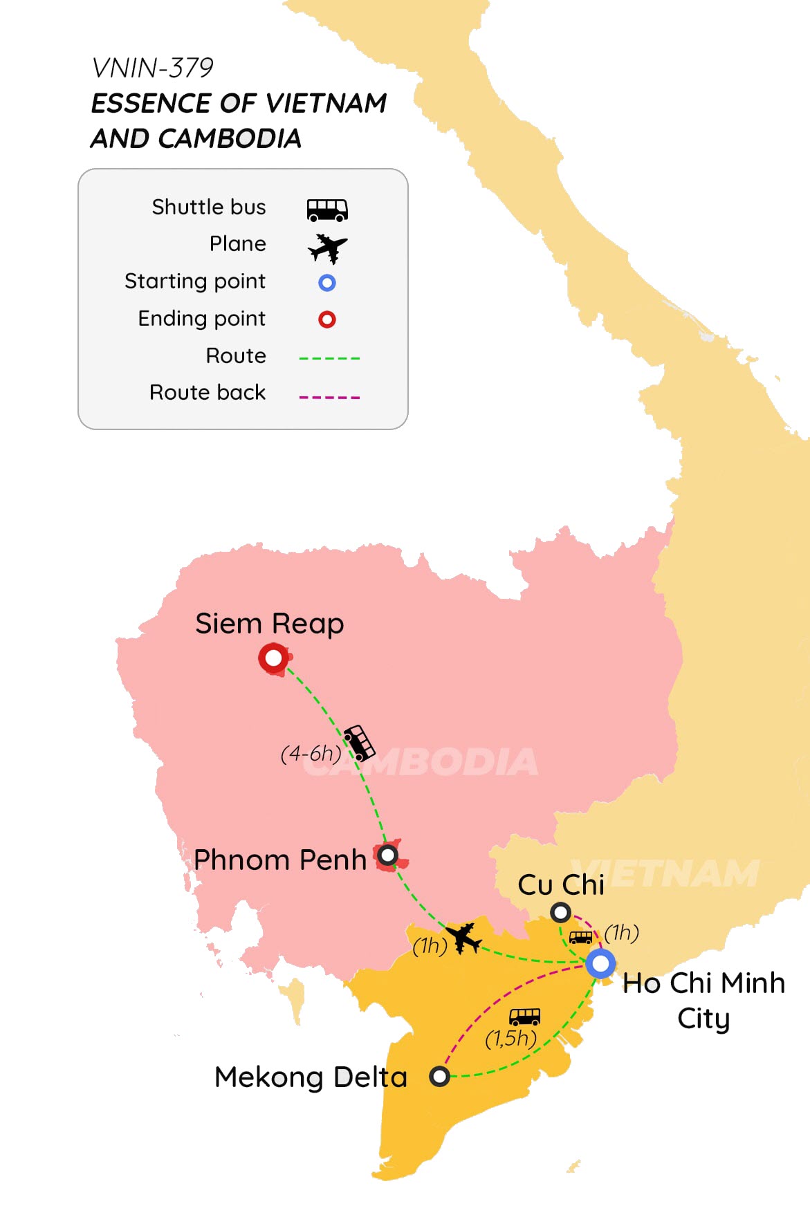 Thành phố Hồ Chí Minh (3 đêm), Phom Penh (2 đêm), Siem Reap (2 đêm)