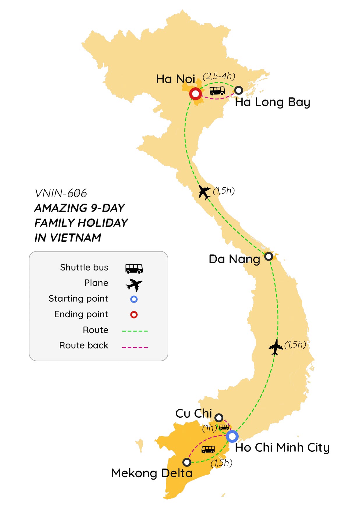 KỲ NGHỈ GIA ĐÌNH 9 NGÀY TUYỆT VỜI TẠI VIỆT NAM là cơ hội tuyệt vời để bạn gần gũi hơn với gia đình trong hành trình đến đất nước Việt Nam kỳ diệu. Trong gói tour du lịch Việt Nam, bạn có thể đắm mình vào cảnh quan ngoạn mục, ghé thăm một số điểm nổi bật trên khắp đất nước cũng như trải nghiệm những khía cạnh khác ở Việt Nam và tạo ra những kỷ niệm tuyệt vời với những người thân yêu nhất của bạn.