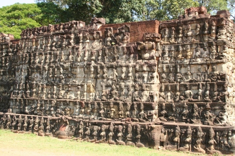 Chúng tôi tiếp tục tham quan Sân thượng của Vua phong. Nền tảng chạm khắc tinh xảo này là lò hỏa táng của hoàng gia và bức tượng ban đầu được cho là vua phong, giờ được cho là Yama, thần chết. Chúng tôi tiếp tục đi dọc theo Sân thượng của Voi, ban đầu được sử dụng làm phòng trưng bày để nhà vua chủ trì các cuộc diễu hành, biểu diễn và các môn thể thao truyền thống. Ở phía nam là Baphuon, một trong những ngôi đền đẹp nhất tại Angkor, có niên đại từ thời trị vì của Uditayavarman 1 vào thế kỷ 11.