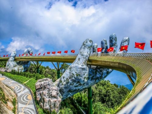 9.00am Conquer the highest peak of Ba Na Hills by cable car. Take a walk on the Golden Bridge. Enjoy breathtaking panoramic views of Ba Na Hills from the Golden Bridge, one of the world's most striking pedestrian bridges. Continue to see beautiful D’amour flower garden, Debay wine Cellar, Linh Ung pagoda where the 36m Sitting Buddha statue is located.