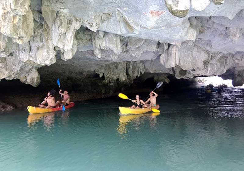 14h30: The next stop is the Luon Cave area. Here, you can engage in one of two exciting activities: kayaking or taking a bamboo boat ride. Explore the captivating surroundings and immerse yourself in the natural beauty of the area.