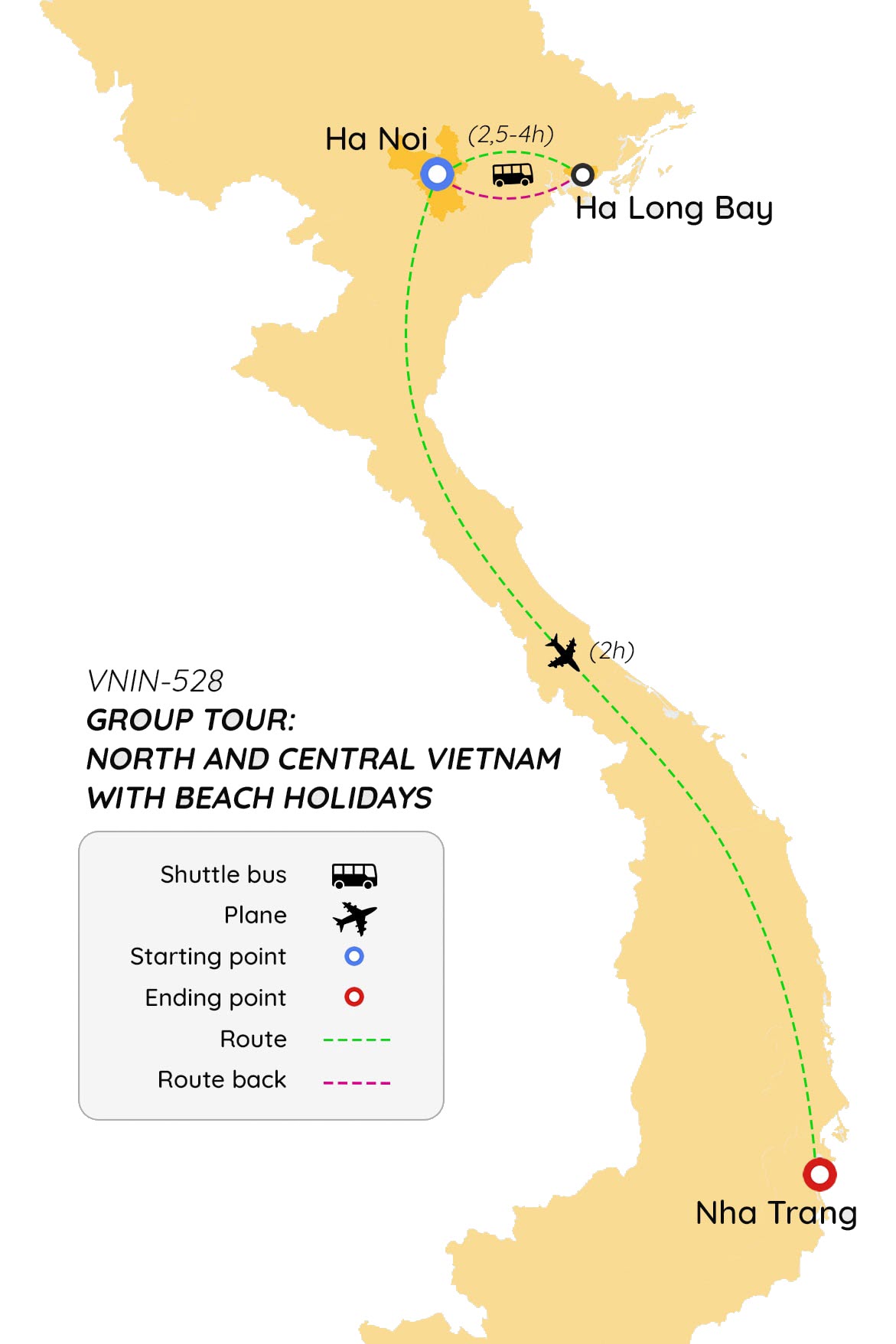Acommodations: Hanoi (1 night), Halong Bay (1 night), Nha Trang (2 nights)