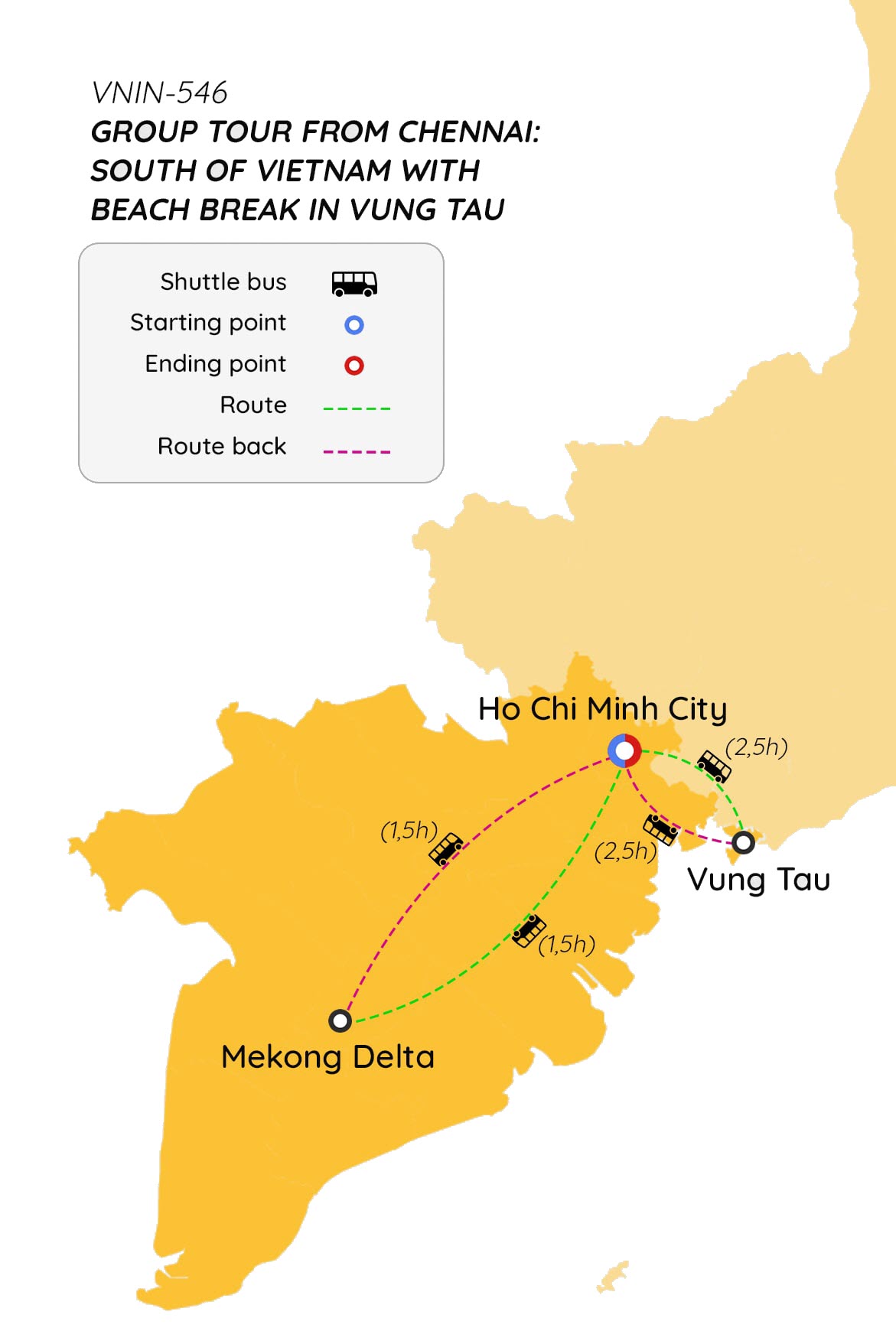 Acommodations: Ho Chi Minh (2 nights), Vung Tau (3 night)