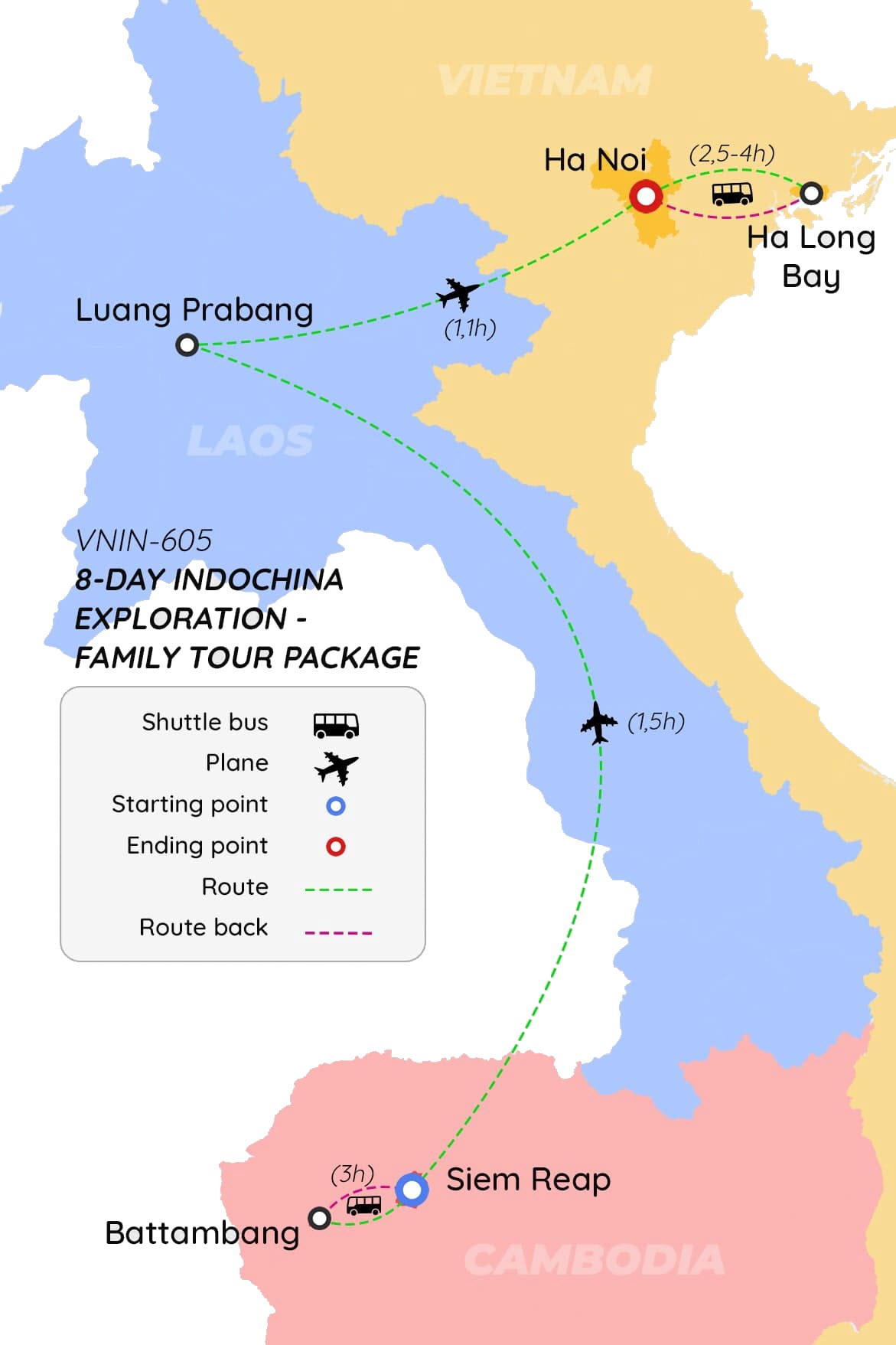 This Indochina tour package is an ideal option for you to spend your vacation with your family in the Southeast Asia area. With this awesome tour, you will stop by three countries: Vietnam, Laos, Cambodia and enjoy excellent experiences with your beloveds while visiting most attractive destinations, including Angkor Wat, Tonle Sap Lake, Kuang Sy Waterfalls, Pak Ou Caves, Temple of Literature, Halong Bay…
