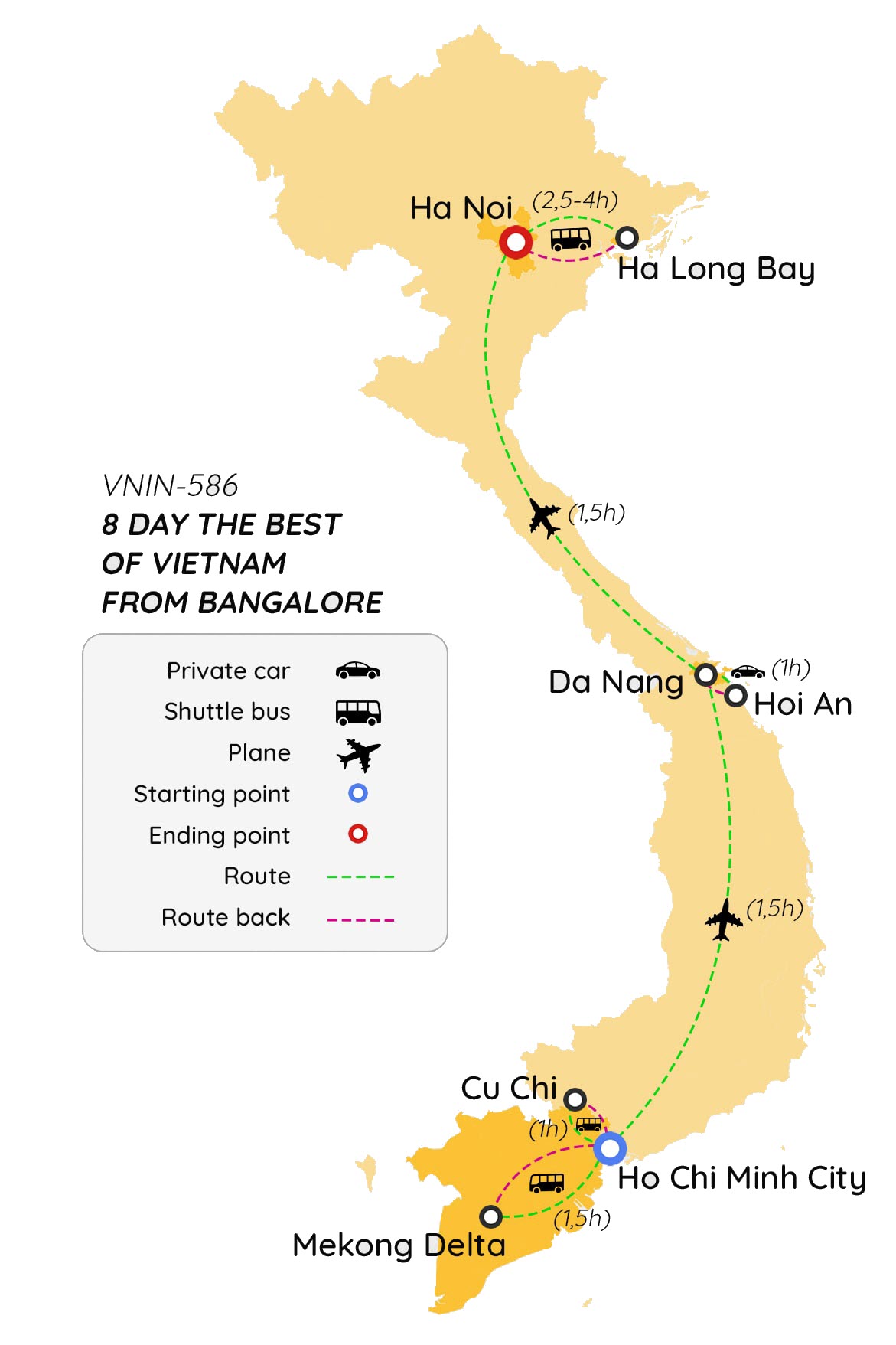 - Internal flights in economy class as mentioned in the itinerary: Ho Chi Minh – Danang & Danang – Hanoi