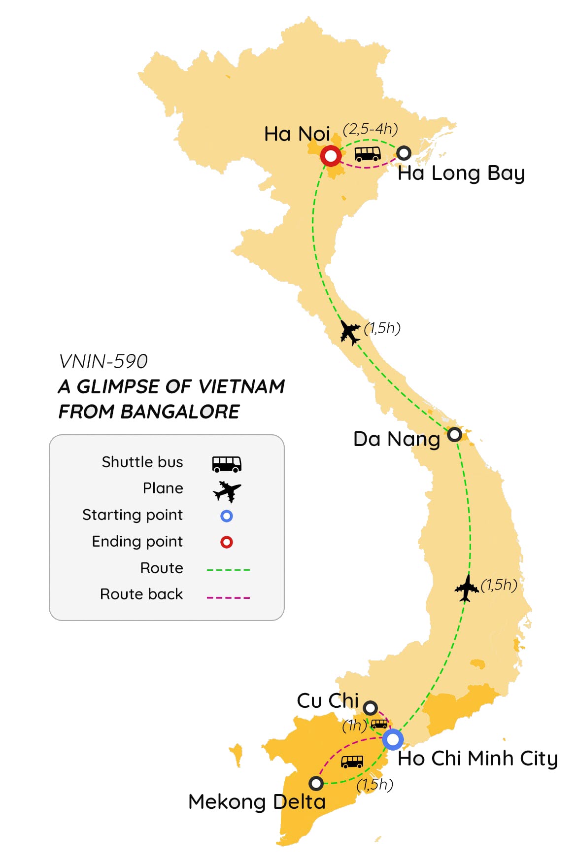 - Internal flights in economy class as mentioned in the itinerary: Ho Chi Minh – Danang, Danang – Hanoi