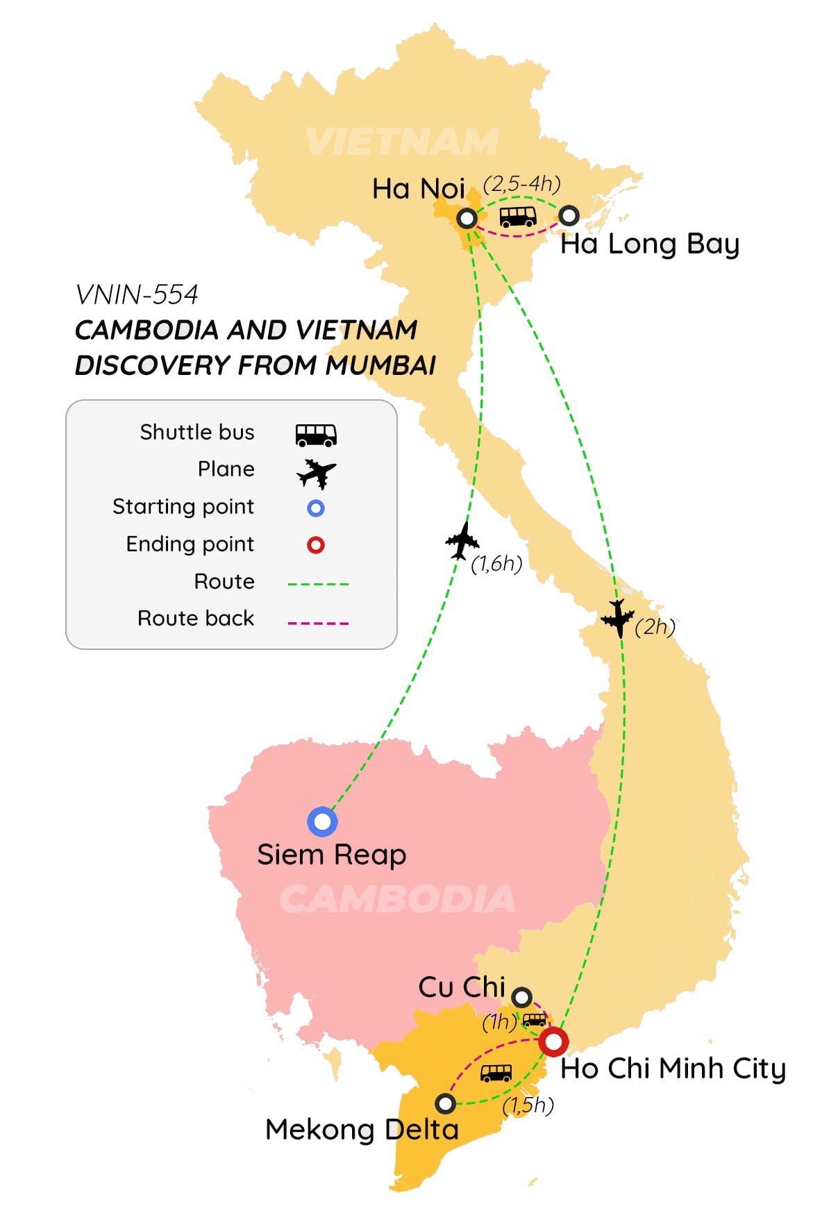 - Internal flights in economy class as mentioned in the itinerary: Siem Reap – Hanoi , Hanoi – Ho Chi Minh